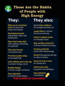 1. They wake up at consistent times every day, which keeps their internal body clock steady, supports natural circadian rhythms, and makes mornings smoother, by avoiding irregular schedules,           they improve alertness, boost productivity, and maintain energy levels, showing that discipline in sleep patterns provides lasting fuel for mind and body.