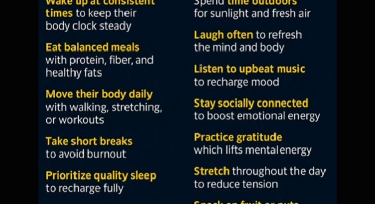 3. They move their bodies daily through walking, stretching, or workouts, ensuring blood flows freely and oxygen fuels muscles and the brain; this consistency maintains strength, reduces stiffness, and improves mood, proving that activity doesn’t have to be extreme just steady and intentional-to power energy, productivity, and resilience over time.